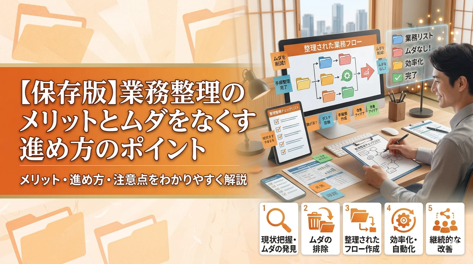 業務整理は、社内に潜むムダ・ムラ・ムリをあぶり出し、本当に価値を生む仕事に集中するための最初のステップです。ここでは、業務整理の基本概念と目的、そして具体的にどんな業務から着手すべきかを体系的に解説します。